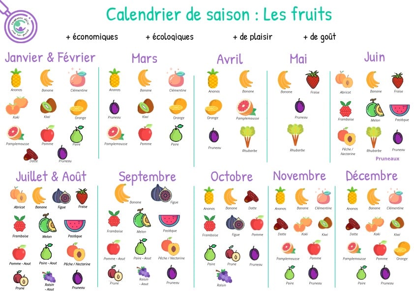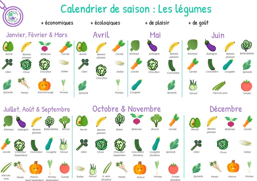 Avec notre calendrier de saison, il vous suffit de regarder le mois de l’année qui vous intéresse pour connaître les fruits et/ou les légumes qu’il vous sera possible de trouver, à cette période.