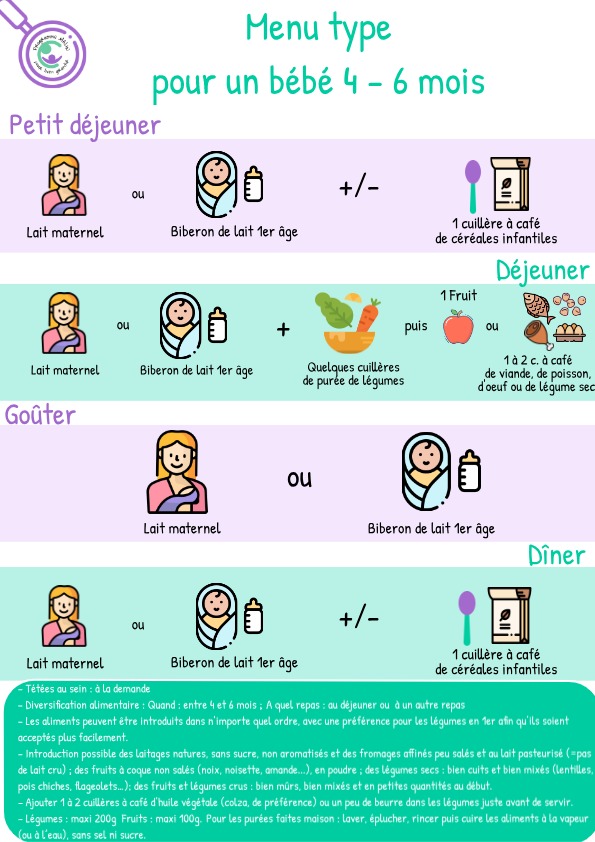Journée type pour un bébé de 4 à 6 mois débutant la diversification alimentaire